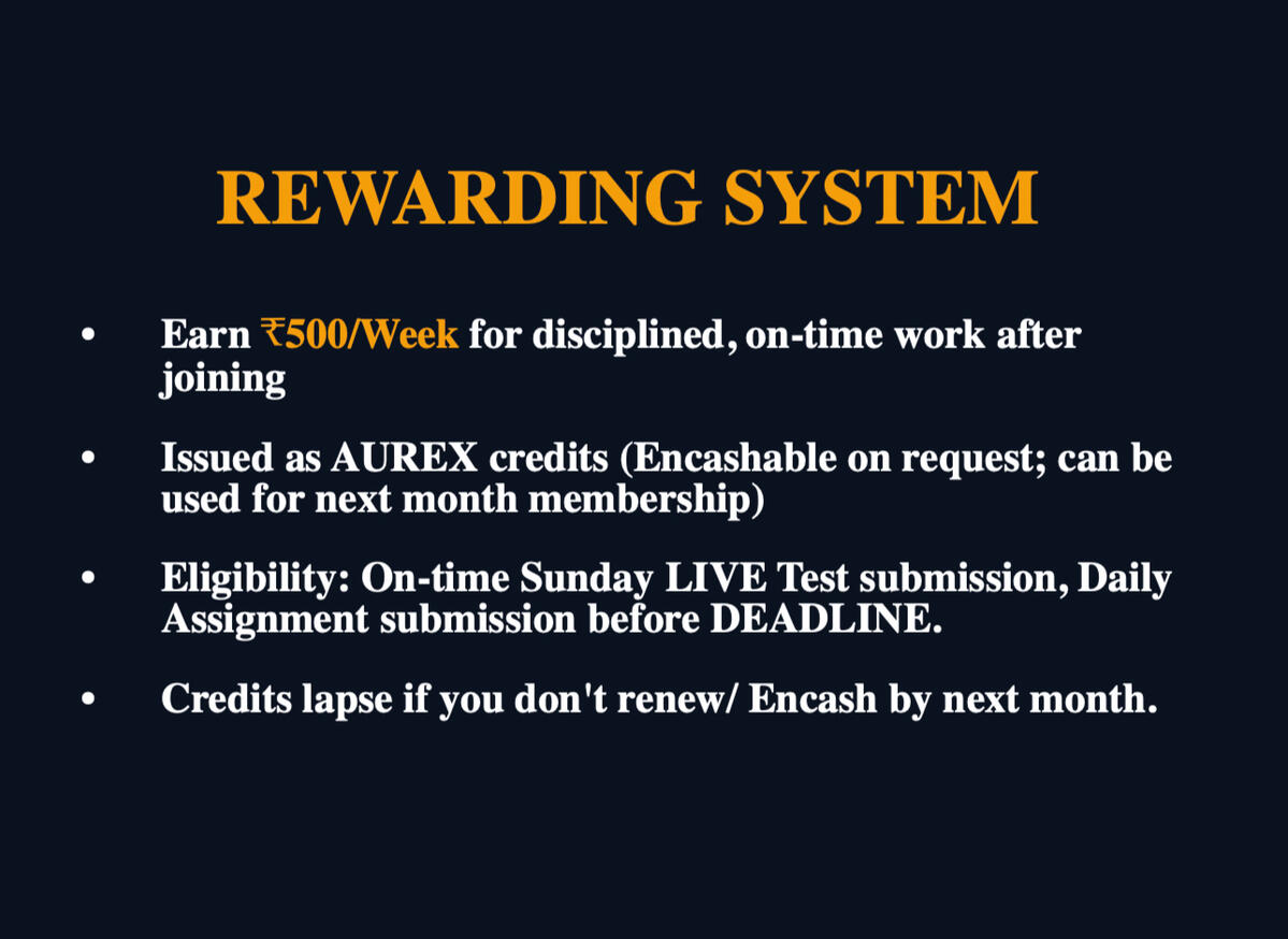 A. Weekly rewards apply only for a full Mon→Sun with 100% completion (daily sets + Sunday test). If you join mid-week, your streak starts that day and prior work is bonus (not cash-eligible).